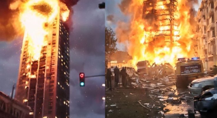A powerful earthquake struck the border region, sending shockwaves through multiple communities and leaving widespread devastation in its wake. High-rise buildings swayed violently, and one tower was engulfed in flames, with thick black smoke billowing into the sky. Streets were littered with debris, shattered glass, and damaged vehicles, creating hazardous conditions for residents and first responders alike.
