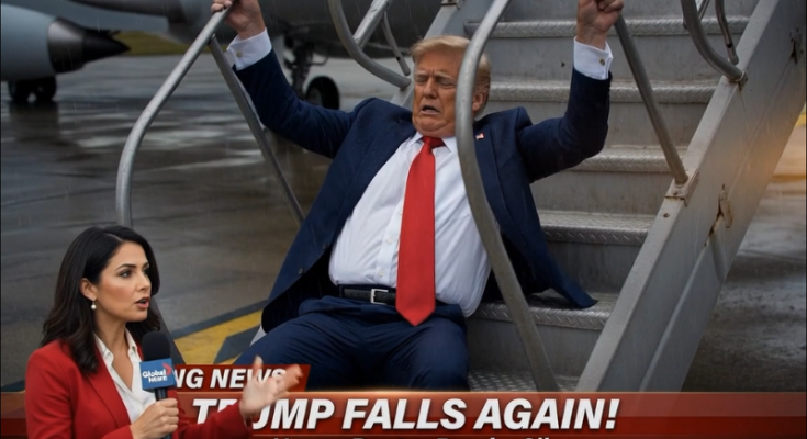 According to these unverified accounts, Trump allegedly lost his balance while ascending the aircraft stairs, prompting renewed discussion about his physical condition. Some versions of the story further suggested that a White House physician had commented on a possible “repeat fall” and hinted at an undisclosed medical issue. However, no official medical statement, authenticated report, or verified video evidence has been made public to support these assertions.